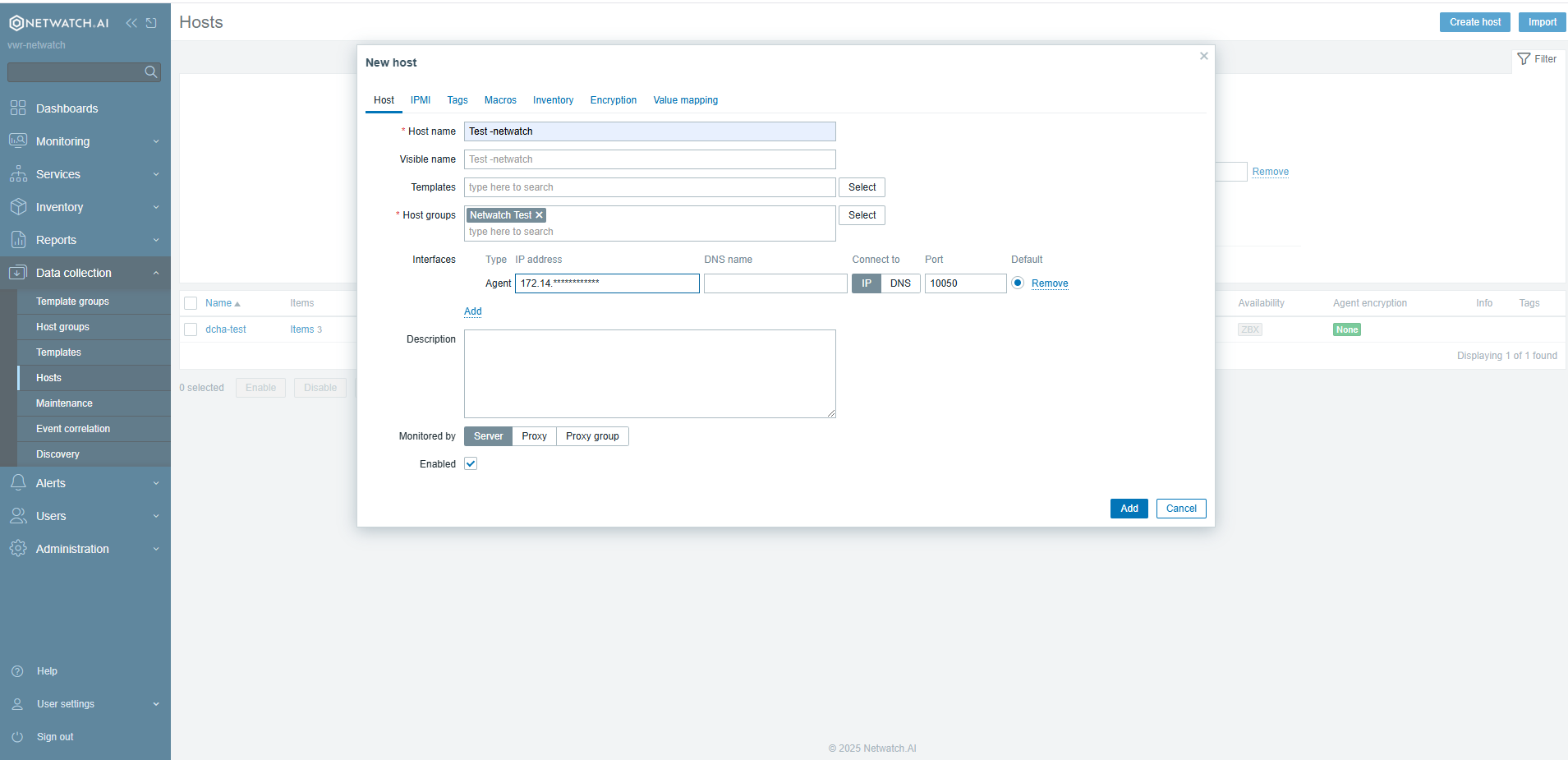 Step-by-step guide on how to add and configure hosts in Netwatch.